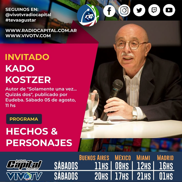 En su nuevo libro (hasta dentro de poco, porque ya una novela aguarda ser editada) editado por Eudeba: SOLAMENTE UNA VEZ… QUIZÁS DOS – ENCUENTROS FURTIVOS DE KADO KOSTZER nos lleva por todo el mundo y nos introduce en micro mundos: camarines, cafeterías, velorios, consultorios, aeropuertos y hasta en la vía pública. Lugares de paso y lugares de visita, de distención y de tensión. Lugares donde se sucedieron encuentros con grandes personalidades de toda talla artística y de todas las nacionalidades. Y fueron una vez… quizás dos. Kado Kostzer no escribe desde el cholulismo. Hoy que cualquier famoso puede ser contratado por conocidos para hacerse pasar por un amigo del organizador de la fiesta, Kado deja estos registros desde un lado B maravilloso como solo el puede contarlo y que siempre recuerda a «Una hermosa criatura» el cuento autobiográfico donde Truman Capote muestra otro lado de Marilyn Monroe.