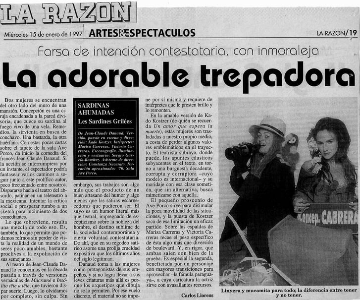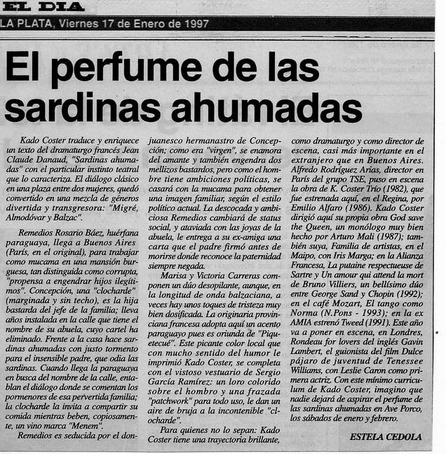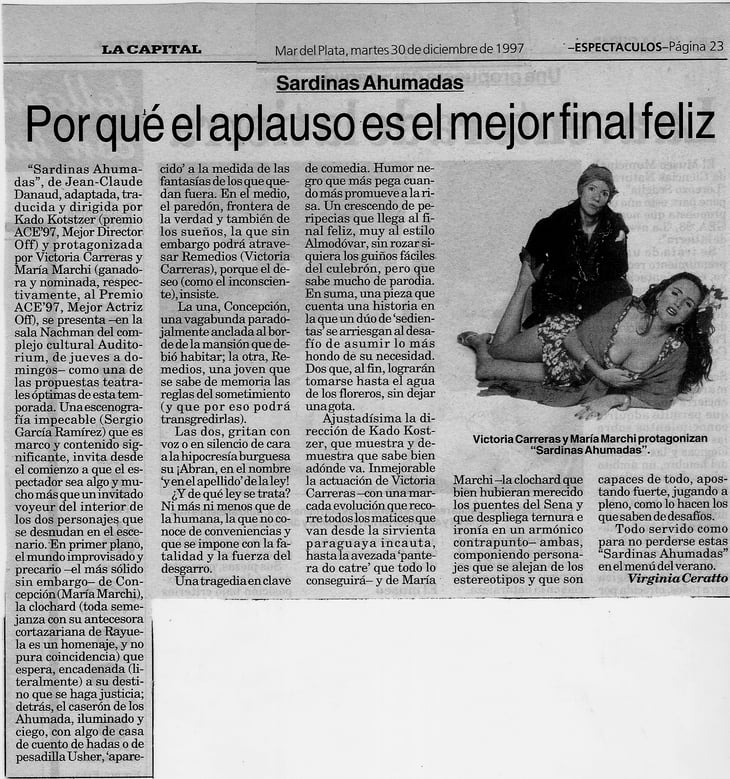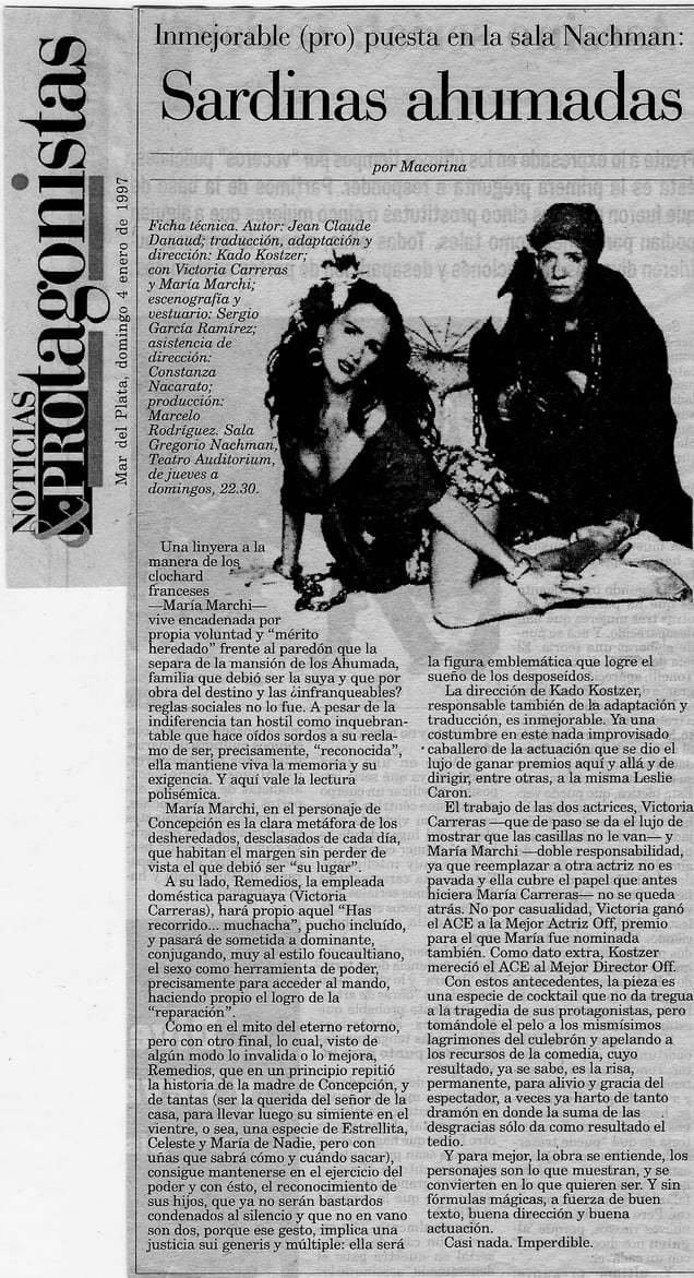 Sardinas Ahumadas, luego de una larga y exitosa trayectoria en Buenos Aires, se presentó en la temporada veraniega de Mar del Plata. María Marchi tomó el papel de Concepción.
