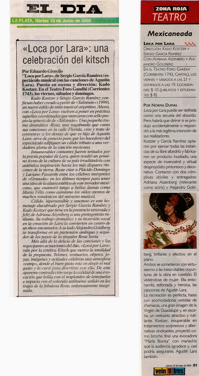 Rosa, victim or impostor? It really dos’nt matter if she is or not daugther of the composer or if Roberto is men or women. The leit motiv of this musical comedy is the search of the identity and both of them are looking for that. For such a big subject, it avoid solemnity and dramatism. Loca por Lara have a tender and comprensive view.